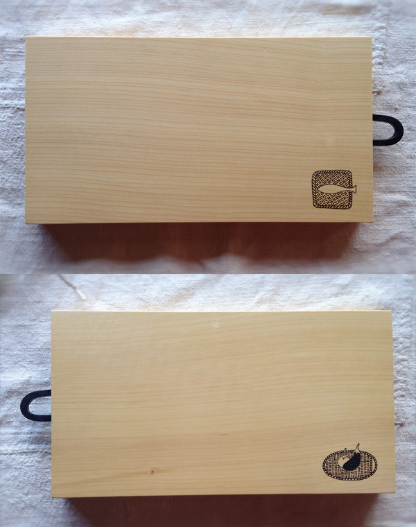 九州の榧(かや)など国産の無垢材でつくるまな板・カッティングボードに、絵かきTOMOTが木目の表情を生かして<焼き絵>を一点一点描いています。